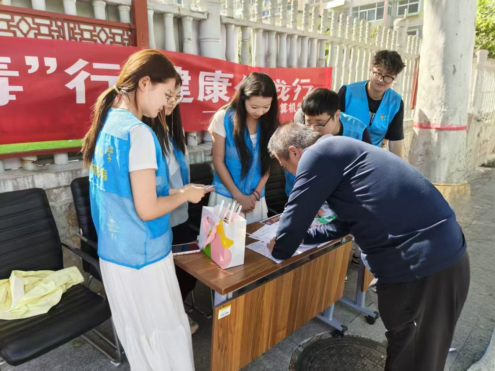 理论学习环节后,志愿服务队启动“智慧禁毒社区行”专项行动。志愿者分组开展两项服务:一是“数字助老防毒课”,针对老年群体开设智能手机防诈反毒专题培训,重点讲解“涉毒链接识别”“网络购药安全”等实用技能;二是“无毒家园共建站”,协助社区工作人员更新禁毒宣传栏,同时开展禁毒知识普查调查,回收有效问卷 50 余份。活动期间,志愿者累计发放《家庭防毒手册》并解答居民咨询,实现了科技手段与禁毒宣传的深度融合。