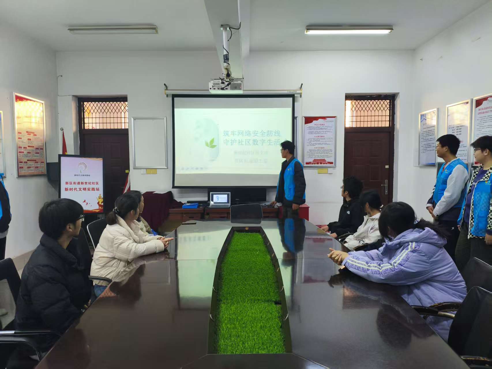 社区工作人员、志愿者及居民代表齐聚一堂,共同学习网络安全知识,构筑社区网络安全屏障。活动中,汇报人借助PPT展开讲解,内容涵盖网络安全的重要性、社区常见网络安全问题、防护措施以及未来展望四个方面。在阐述网络安全重要性时,通过业主信息被售卖、社区门禁遭攻击等真实案例,生动说明了个人信息保护、公共数据安全及系统稳定运行的紧迫性;在分析社区网络安全问题时,重点解读了DDoS攻击、恶意软件入侵、SQL注入等威胁手段,以及个人信息泄露的常见情景;在介绍防护措施环节,既讲解了防火墙、入侵检测、数据加密等技术手段,也强调了完善管理制度、加强宣传教育、建立应急响应机制等非技术措施的重要性。