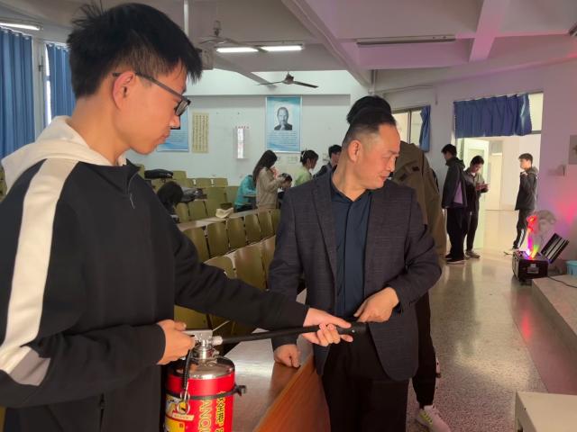 在培训会上,马国栋向同学们强调了掌握基本安全技能的重要性,结合实际案例,围绕消防安全常识、火灾防范与扑救、消防设施使用技巧、安全逃生方法等进行培训。通过几起校园火灾事故短片,马国栋讲述了火灾的危害性,着重讲解了如何检查和消除消防安全隐患、扑救初期火灾、及时逃离火场等消防安全知识,并现场讲解了灭火器的功能区别,如何区分并正确使用灭火器,利用灭火器实物以及火焰模拟机器演示如何用灭火器进行灭火。会后,马国栋组织同学们进行灭火器实操演练,亲自体验“一提、二拔、三握、四压”的灭火器使用步骤,使同学们熟练掌握灭火器的正确操作方法。与会同学们认真学习,积极参与。本次培训内容充实,对同学们学习消防知识和学会消防器材的操作使用技能有着极其重要的指导作用。
