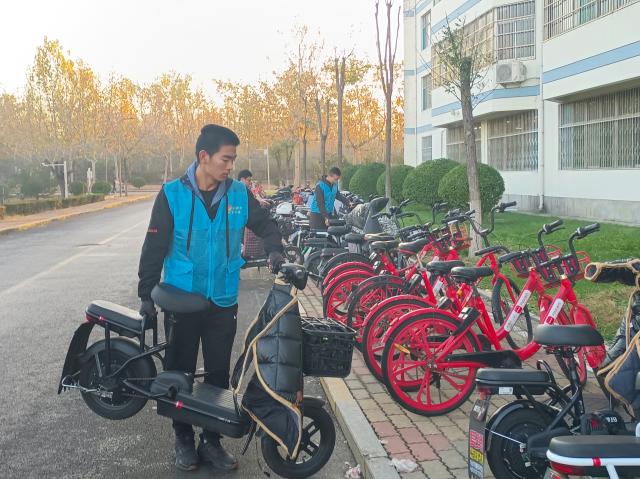 停车乱不乱直观的反映学校的校园面貌和人文素养,车辆乱停乱放不仅会扰乱道路通行秩序,还埋藏着无限安全隐患。志愿者们本着“合理规划,高效执行,服务同学”的原则,对车辆停放进行了科学规划,包括车辆布局、停车次序、车头朝向等,做到最大限度扩充车位,引导同学们停车入位,规范停车秩序。志愿者们分工明确,有人站岗,有人指引,有人停放,活动进行的有条不紊。为了使车辆的主人便于找到车子,志愿者们采用就近原则进行摆放,并在非停车区域进行拦车、劝导,引导同学们将自己的电动车、自行车等规范停放并关闭电动警报,宣传校内骑车慢行。尽管寒风萧瑟,但志愿者们不畏严寒,不辞辛苦,以积极饱满的态度,全神贯注投入到规范非机动车辆停放的志愿服务活动当中去,用自己的实际行动为和谐文明校园的建设出一份力。