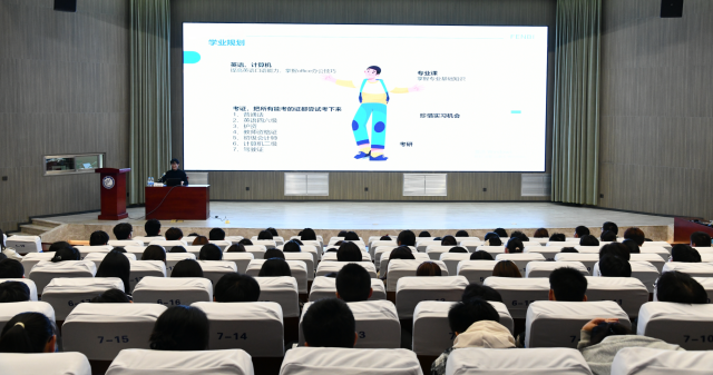 讲座伊始,王俊超介绍了近三年本科生薪资变化,以及企业对本科生的学历需求变化,指出当前本科生就业以大城市为主,五成本科生选择考公考研和深造为第一去向。他结合大学生就业困难的现状,提出增加竞争力方法,如考证,提高口语能力,珍惜实践机会等,并介绍了当前就业几大方向,内容涵盖国考,西部计划、三支一扶、参军等国家计划。随后王俊超将就业与考公作对比,建议同学们当有合适工作时应先就业再考公,并为大学生就业提出了宝贵意见:一是考虑未来职业定位和所从事的领域要求,二是考虑个人兴趣和对学历期待值。最后,王俊超寄语同学们:纵使困顿难行,亦当砥砺奋进。