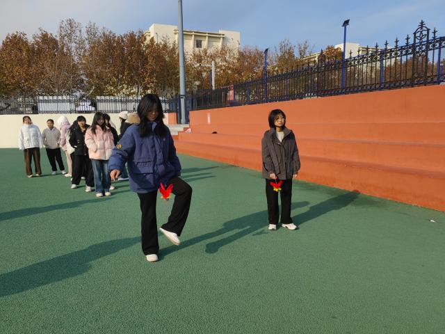 比赛采用单人踢毽子的形式,现场井然有序,裁判们认真负责,他们全神贯注地观察着比赛的每一个细节,严格按照比赛规则进行评判,为选手们创造了一个公平竞争的环境。比赛开始前,裁判宣读比赛规则,四人一排,所踢次数最多的人晋级。随着裁判的一声哨响,比赛正式拉开帷幕。有的选手技术娴熟,毽子在他们脚尖翻飞跳动。有的选手虽然略显紧张,但也尽己所能展现自己的风采。选手们的比赛热情将寒冬的操场氛围点燃起来。无论是娴熟者的精彩演绎,还是初学者的勇敢尝试,都共同交织成了一幅充满活力的校园运动画卷。全场同学的目光随着毽子的飞舞来回转动,喝彩声、掌声、欢笑声此起彼伏。比赛结束后,同学们纷纷表示,以后将继续参加到体育锻炼中去,通过运动来放松心情、调整心态,培养积极健康的生活方式。