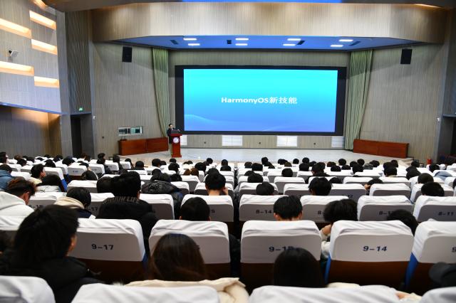 活动伊始,贾保先致辞,他表示,鸿蒙生态繁荣发展,新技术不断涌现,在座同学要不断学习新知识,才能跟上时代步伐。活动过程中,王友君从“迎接鸿蒙产业新时代、开启HarmonyOS新技能”出发,内容涵盖鸿蒙产业背景、HarmonyOS新技能等,深入浅出地讲解了鸿蒙在万物互联时代的机遇和发展趋势以及HarmonyOS原生应用市场对人才的需求,引导同学们主动学习鸿蒙生态建设,不断探索新的技术和应用,为鸿蒙生态的发展贡献力量。杨昌以“如何为鸿蒙应用提供弹性、可靠、安全的云底座”为主题,结合具体实例,阐述了鸿蒙应用云化部署的优势和云架构师的就业趋势,为同学们提供新的就业方向。李秀兰聚焦“HarmoyOS高校行开班流程”主题,为同学们介绍了训练营的课程体系及项目中所用工具,这为在校师生提供了丰富的开发工具与资源,搭建起学习、交流、分享、实践的平台。