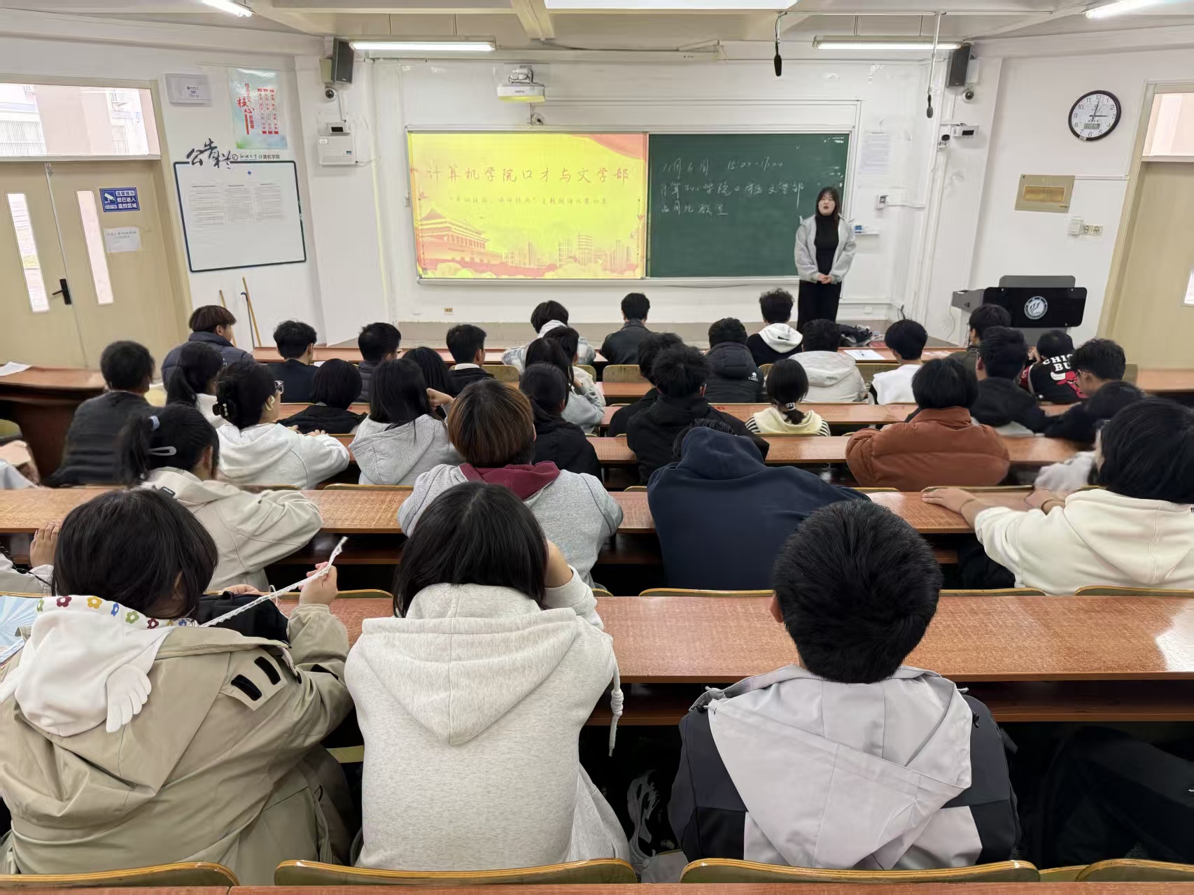 为响应学校“声动校园,颂传经典”的活动号召,丰富校园文化生活,为学子搭建展示自我的平台,11月6日,计算机学院文艺爱好者协会口才与文学部、学生会文体活动部于西校区11号楼C107联合举办朗诵大赛。计算机学院辅导员王昕冉亲临现场指导。