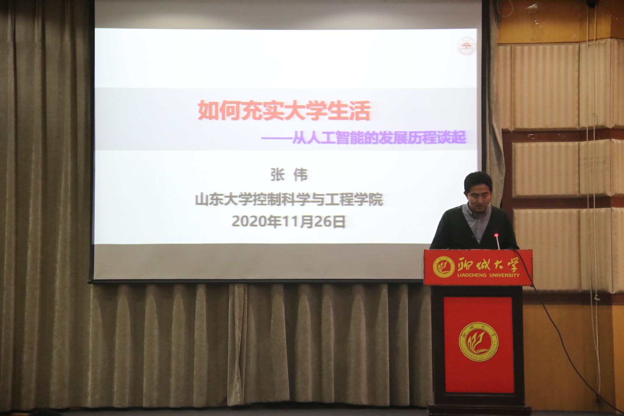 为进一步帮助同学们了解专业前景,激发学习热情,为自己合理规划大学生涯,11月26日,由学生工作处主办、计算机学院承办的“羡林大讲堂—如何充实大学生活 从人工智能的发展历程谈起”专家讲座于西校区图书馆大报告厅举办。本次讲座特邀山东大学教授、博士生导师张伟主讲,计算机学院党总支书记康殿峰,副院长、党总支副书记刘永涛,及计算机学院各专业同学参加了讲座。