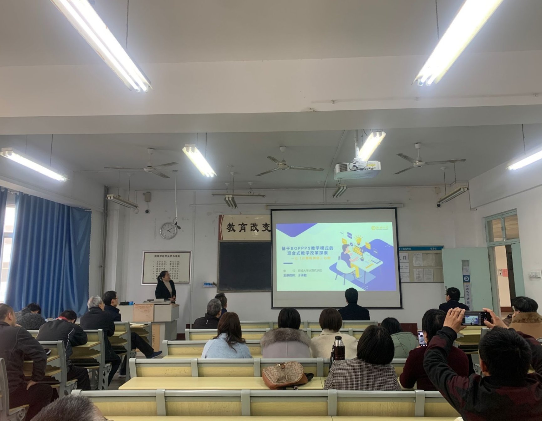 为促进教师间教学经验的交流,学院召开混合式教学改革研讨推进会。3月18日,在樱花动漫 的全体教工会上,邀请于承敏副教授进行了一次关于混合式教学改革的讲座。于承敏,计算机学院副教授,在2021年度樱花动漫 教学创新大赛中获得一等奖。本次讲座的主题是基于BOPPPS模式的混合式教学改革探索。