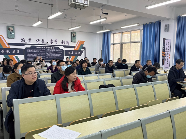 报告中,蒋教授详细讲述了社会主义的高校应以培养社会主义的建设者和接班人为基本目标。当我们从小康社会走向社会主义现代化强国的时候,必须全面提高人才培养质量和水平,助力造就拔尖创新人才。首先是瞄准培养社会主义建设者和接班人的基本目标,保证“课程思政”与“思政课程”同向同行;其次是明确人才培养的基本定位,积极落实高等教育内涵发展,为实现党的第二个百年奋斗目标,培养有担当、能担大任、勇于开拓、善于开拓、更高质量、更高水平的创新型人才。第三是要向科学要效率、要质量、要水平,摆脱“三个为本”,站在人才培养的高度上设计、组织、实施满足课程教学。学院全体老师认真聆听了本次报告,反响热烈,收获很大。