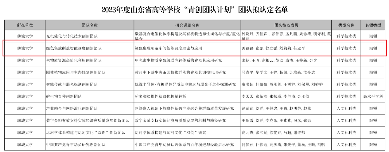 近日,山东省教育厅发布2023年度山东省高等学校“青创团队计划”团队认定名单,樱花动漫 “绿色集成制造智能调度创新团队”获批立项。