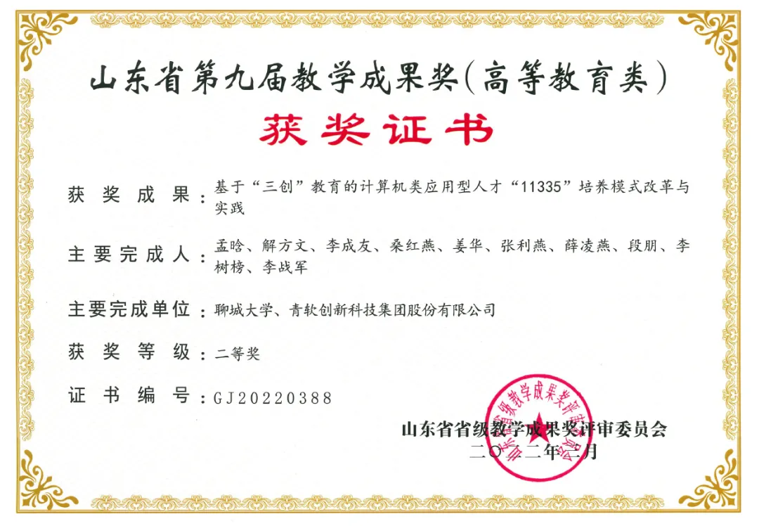 2021年获评山东省一流专业建设点;为山东省教育厅、财政厅高水平应用型重点建设专业群专业;为樱花动漫 鼓励性发展(A类)专业;拥有山东省一流本科课程三门;近三年,专业学生在国家、省级专业比赛中取得优异成绩,获得国家及省级以上奖励近600人次;专业教师多人次在省、校级教学比赛中荣获一、二等奖。