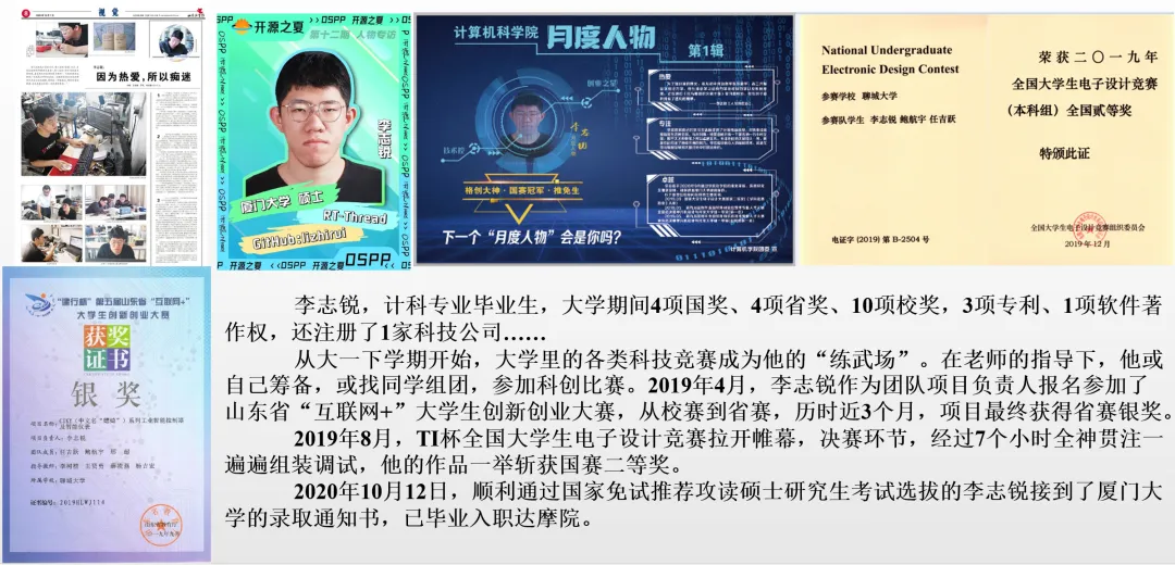 在计算机学院四年的生活,满足了高中时期的我对大学所有的幻想。回想大学时期的那些美好时光和现在拥有的幸福的工作环境,背后都是学院老师和同学们的身影。学习上,老师们不仅耐心为我解答那些专业上的奇思妙想,还会引导我去思考问题背后的深层逻辑,使我可以飞快的成长;同时还经常指导我和同学参加各种专业比赛,去和别的高校的同学竞技、见识不同地方人文和风景。